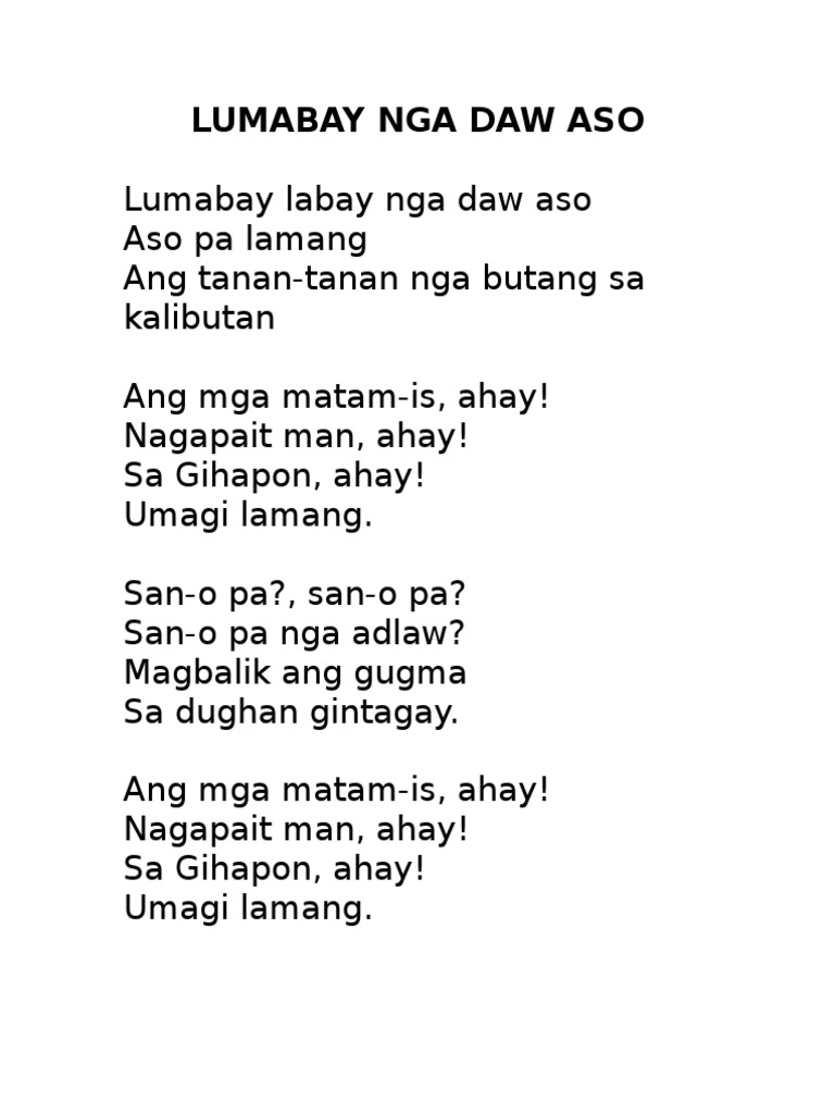From the album Popular Ilongo Songs by Mabuhay Singers on Napster. Lumalabay Nga Daw Aso Read 878 times. Philippine Literature Portal Filipino forum community blog where members can post their writings swap stories ask for advices and generally have a friendly interaction and a good laugh or two.